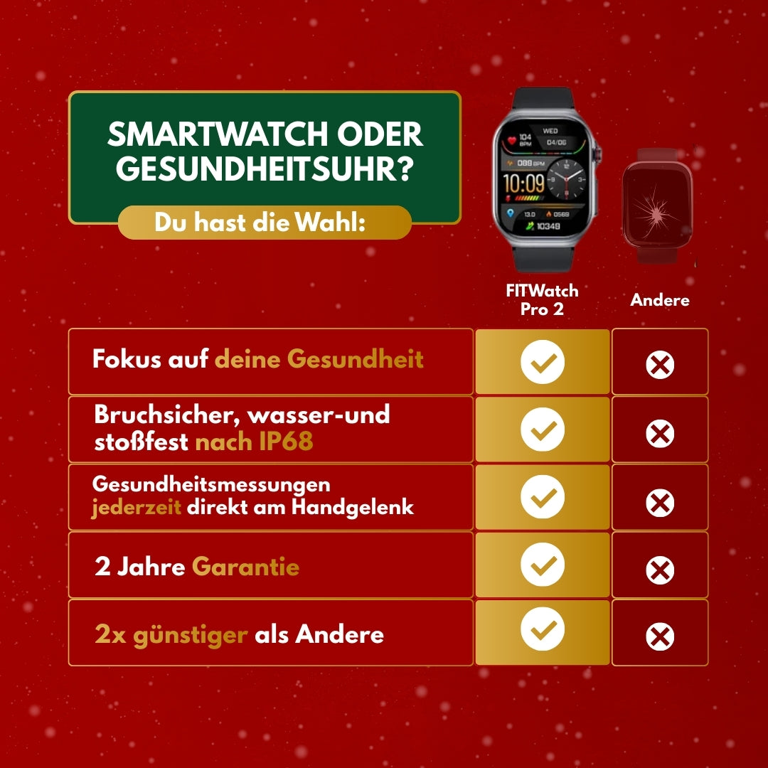 Die FITWatch etabliert sich als unangefochtene Nummer 1 in der Kategorie der Gesundheitsuhren, von Experten für ihre überlegenen Gesundheits- und Fitnessfeatures gelobt. Sie definiert Qualität neu und setzt sich klar von der Konkurrenz ab.